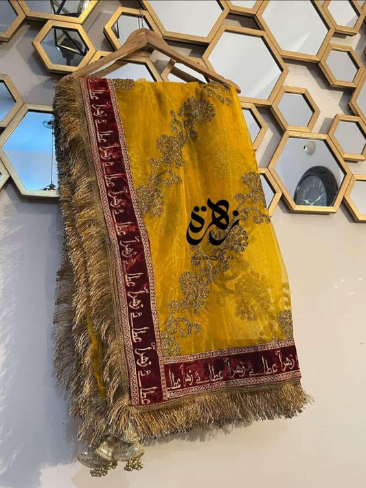 Blessed "Atta e Zehra" SA Duppatta Yellow And Brown Color For Brides "Aarsi Musaf"