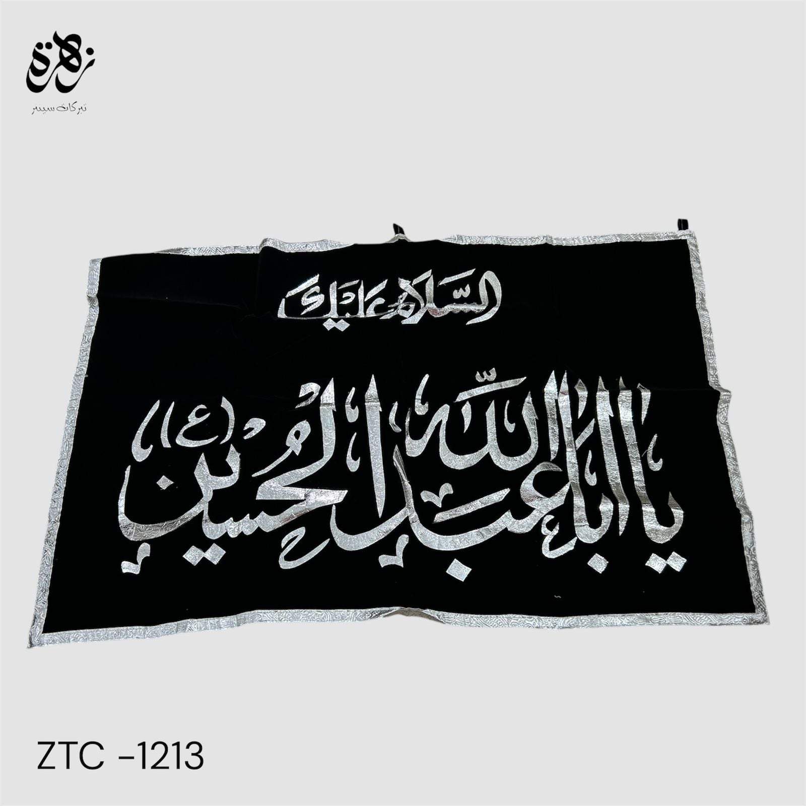 Black Banner of Ya Aba Abdullah Hussain (as) with silver applic work for Majlis