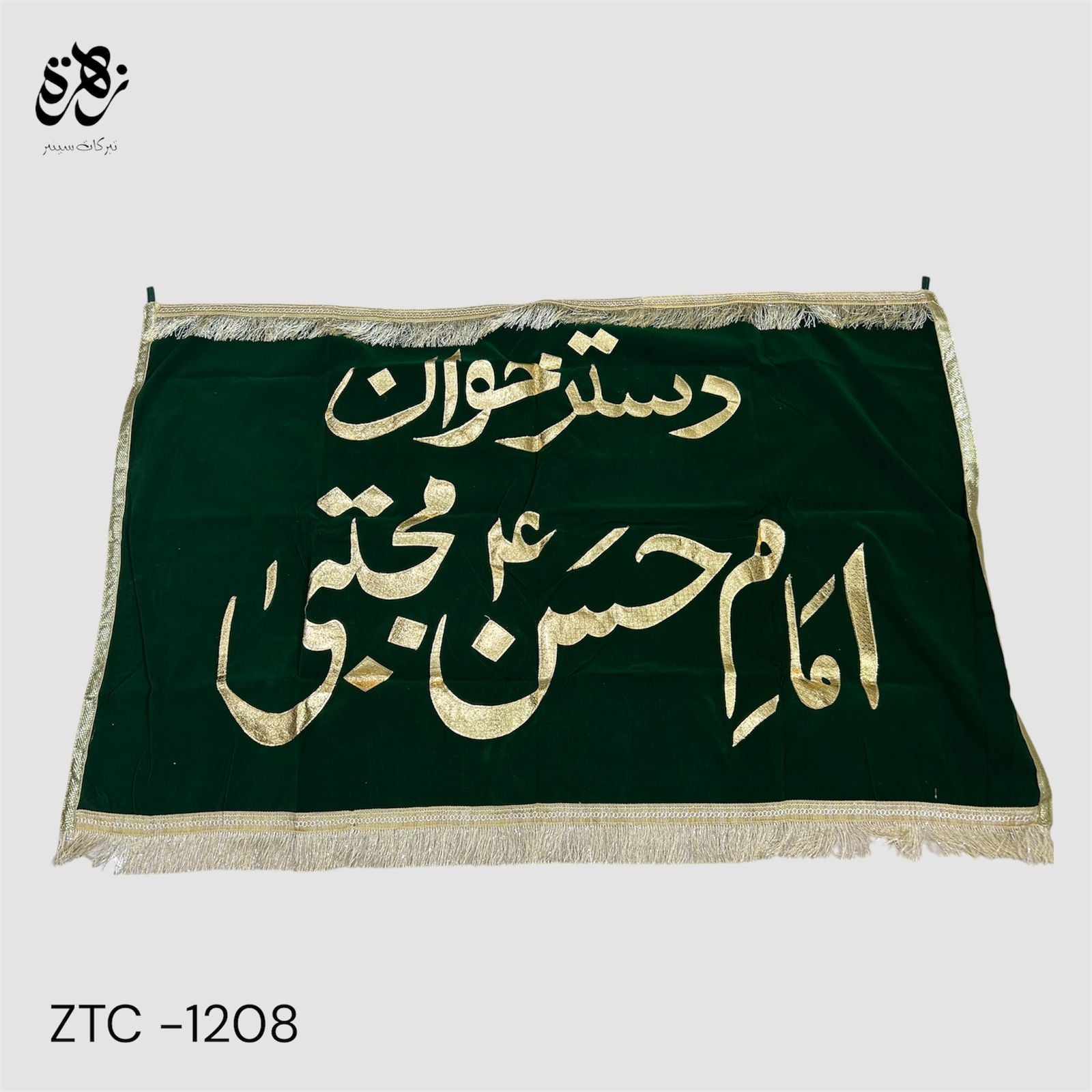 Green Banner of Dastarwan e Imam Hassan (as) with golden applic work for dastarwan